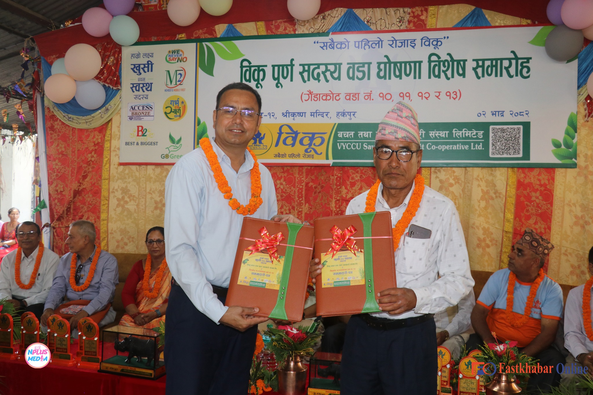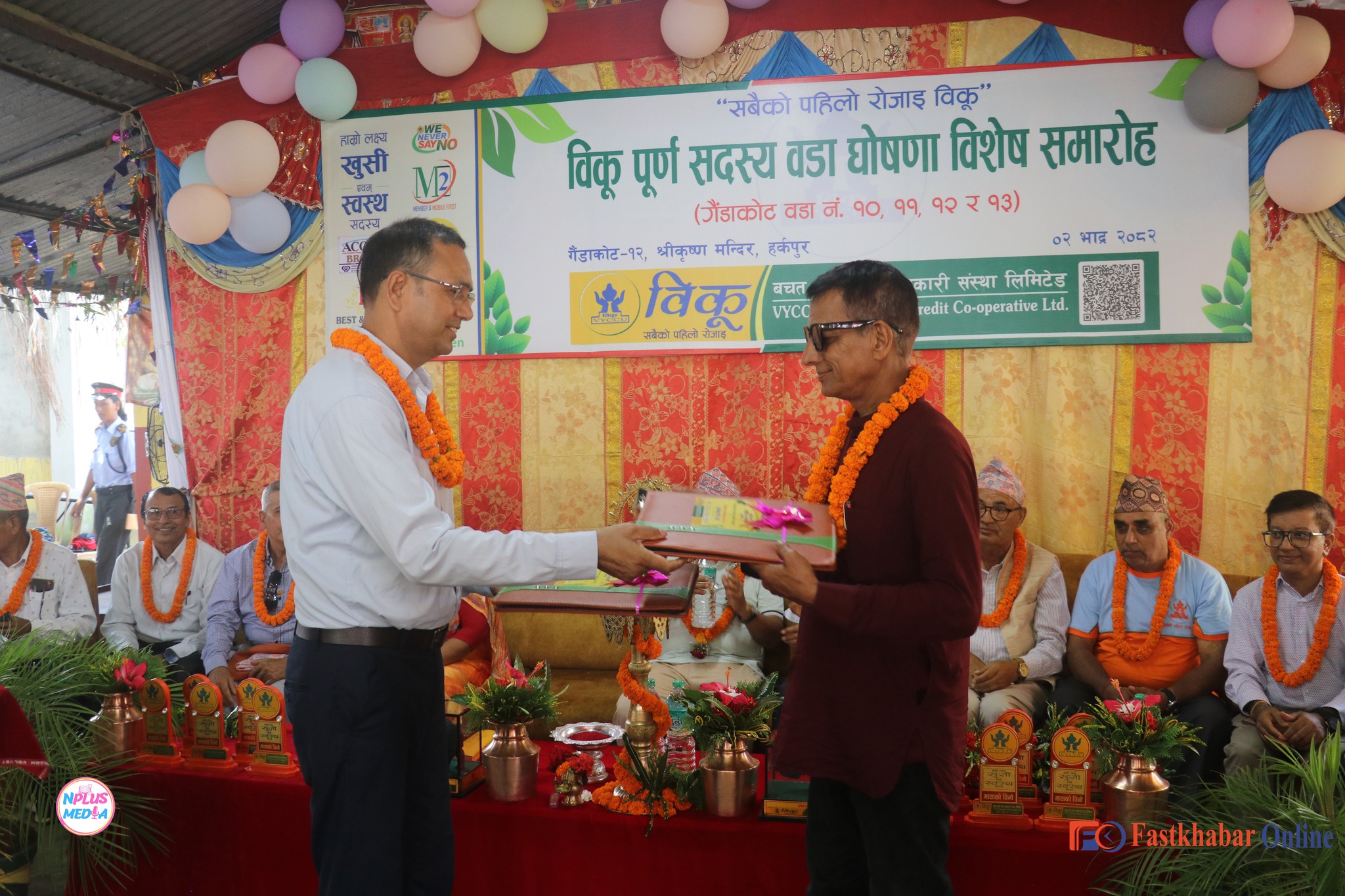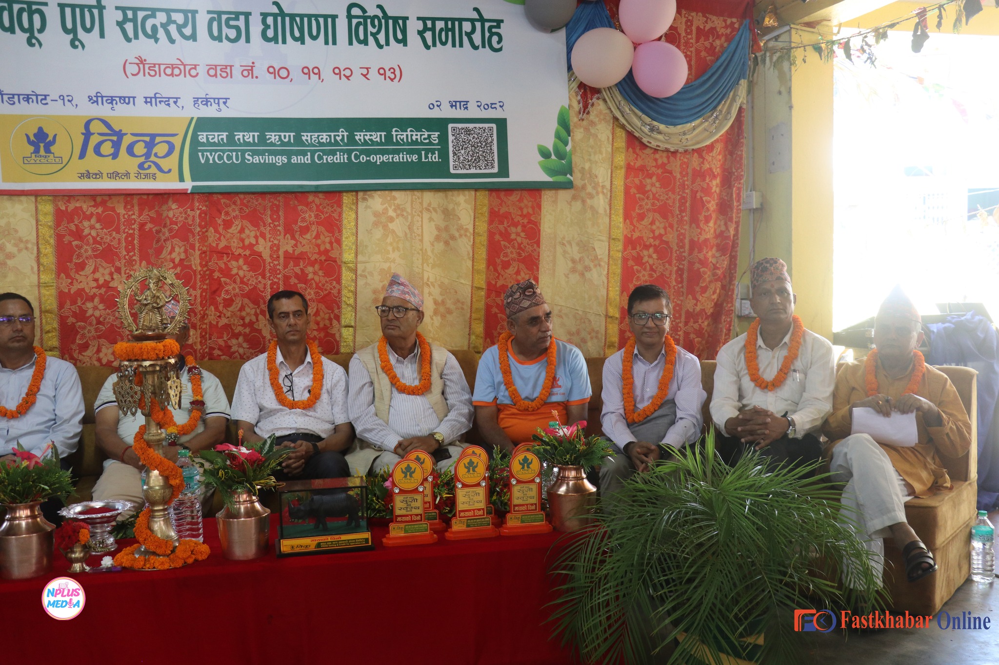विकूले दुई वर्ष अघि भदौ २ गते गैँडाकोट ९ लाई पूर्ण सदस्य वडा घोषणा गरेको थियो भने गत बर्ष फागुन २५ मध्यविन्दु वडा नम्बर १ लाई पनि पूर्ण सदस्य वडा घोषणा गरेको थिया। अहिले सोमबार गैँडाकोट वडा नम्बर १०, ११, १२ र १३ वडालाई पूर्ण सदस्य वडा घोषणा गरेको छ । वडाका करिब ९५ दशमलब ४९ प्रतिशत घर परिवारका सदस्य विकू सहकारीमा सदस्य बनेकाले पूर्ण सहकारी वडा घोषणा गरिएको हो ।