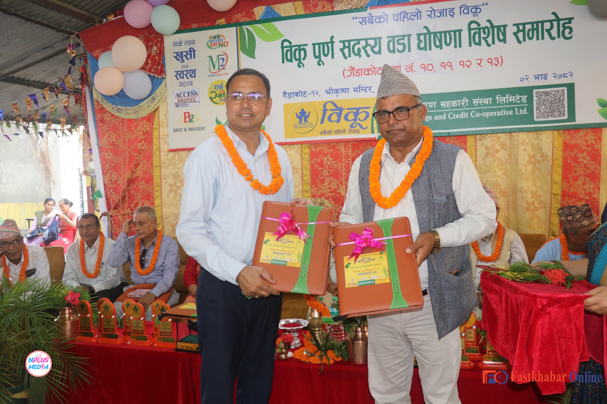बिकु बचत तथा ऋण सहकारी संस्था लिमिटेडका अध्यक्ष प्रेमप्रसाद सापकोटा राजुले विकूले आगामी दिनमा वडा कार्यालय, नगरपालिकासँग सहकार्य गरी गैरवित्तीय कार्यक्रमलाई सहयोग गर्ने, सदस्यको क्षमताका आधारमा आत्मनिर्भर बनाउनेखालका कार्यक्रम गरिने बताउनुभएको छ । अध्यक्ष सापकोटाले आर्थिक रूपले अनुशासन जबसम्म कायम हुँदैन व्यक्तिको प्रगति हुँदैन समाजको प्रगति हुँदैन, त्यसैले आर्थिक रुपले अनुशासन हुन जरुरी रहेको बताउनुभयो। अध्यक्ष सापकोटाले अब वित्तीय कारोबार नजिकका जुनकुनै सहकारीबाट गर्न जनप्रतिनिधिलाई आग्रह गर्नुभयो।