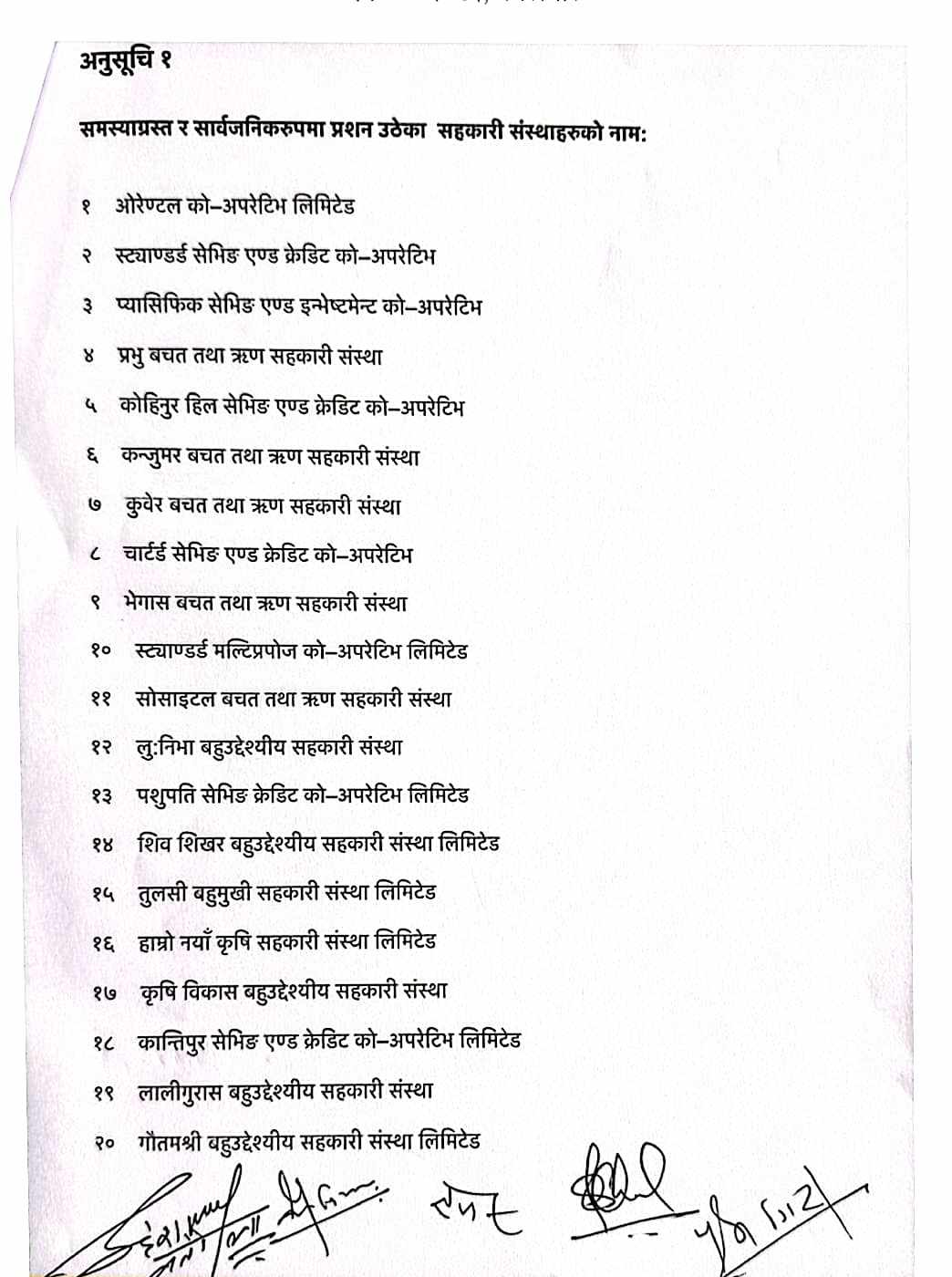 सहकारी संस्थाहरुमा देखिएको सङ्कट तथा यससँग जोडिएको कानुनी र संस्थागत प्रयोजना एवम् वित्तीय प्रणालीको नियमन, सुपरिवेक्षण र पारदर्शिता सम्बन्धमा अध्ययन गरी सुझाव दिने सहमति भएको छ । यसैगरी, समस्या परेका सहकारी संस्थाका बचतकर्ताको बचत रकमको सुरक्षागर्न, जोखिममा रहेका तथा दुरुपयोग भएको बचत रकम छिटो र सहन ढङ्गले फिर्ता गर्न समिने उपाय सम्बन्धमा अध्ययन गर्न सिफारिस गर्ने सहमति पनि भएको छ ।