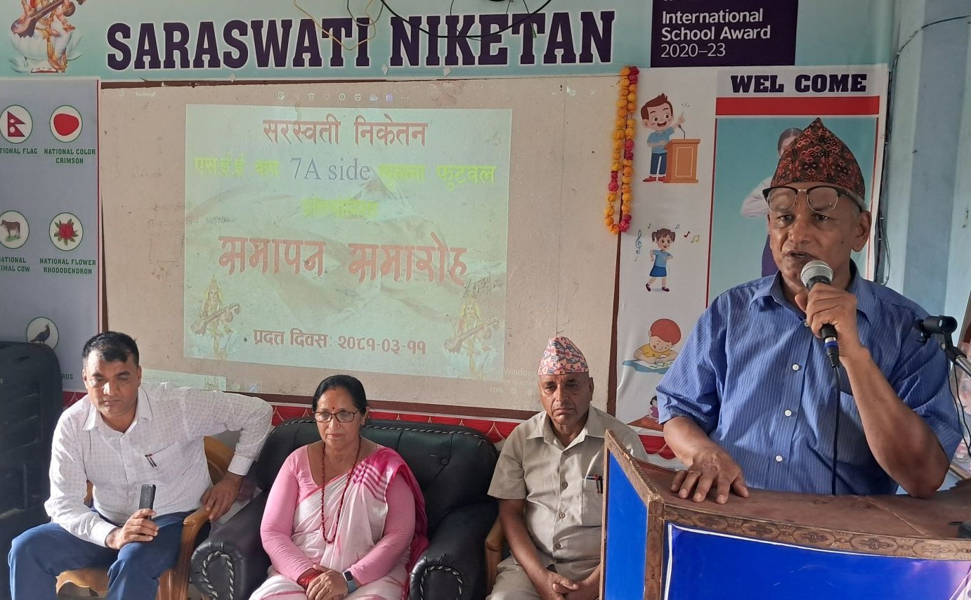 गैँडाकोट १ का वडा अध्यक्ष सुरेन्द्रप्रसाद रेग्मीले सरस्वती निकेतनले सामाजिक उत्तरदायित्व अन्तर्गत अतिरिक्त क्रियाकलापमा देखाएको सक्रियता र वडाको विकासका लागि खेलेको भूमिका अहम रहेको उल्लेख गर्नुभयो ।