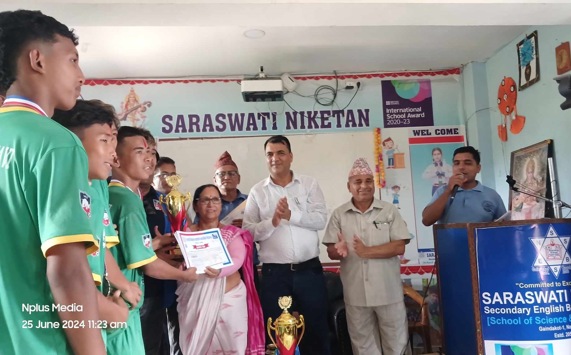 असार ११ ,गैँडाकोट । सरस्वती निकेतन SEE कप ७ ए साइड खुल्ला फुटबल प्रतियोगिताको उपाधी नारायणी इङ्गलिस पब्लिक स्कूल भरतपुर ११ ले हात पारेको छ ।