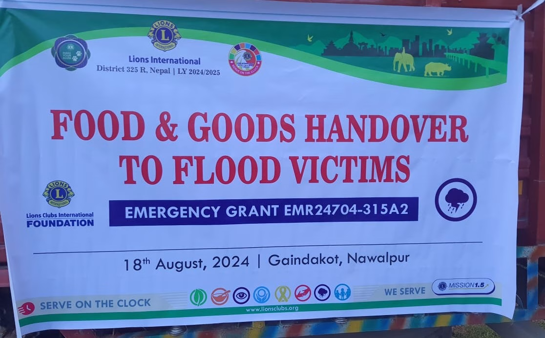 लायन्स क्लब अन्तराष्ट्रिय डिष्ट्रिक ३२५ आरले बाढी आउने बित्तिकै प्रभावितहरुकालागि खाना, शुद्ध पानि उपलब्ध गराएको थियो । बाढीबाट प्रभाबितहरुका लागि चामल, तेल, दाल, नुन, मसला लगायतका खाद्य सामाग्री, प्राथामिक उपचार सामग्री, ओड्नका लागि ब्याल्ङ्ककेट, म्याट, शुद्ध पिउने पानी, फिनेल लगायतका अत्यावश्यक सामग्रीहरु आज प्रदान गरेको हो ।
