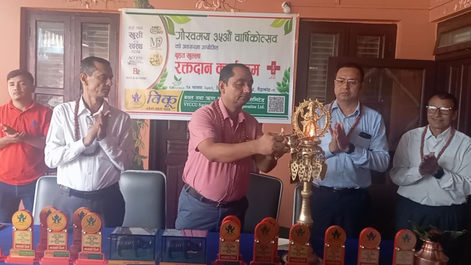 विकूले करिब १४ बर्ष देखि रक्तदानको कार्यक्रम गर्दै आएको छ । चितवन र नवलपुरमा रगतको माग अनुसारको आपूर्ति हुन नसकेको अवस्थामा सहज होस भन्ने हेतुले रक्तदान कार्यक्रम गरिएको विकू साकोसका अध्यक्ष प्रेमप्रसाद सापकोटा राजुले बताउनुभयो ।  विकू साकोसका अध्यक्ष सापकोटाले बार्षिकोत्सवका कार्यक्रम अन्र्तरगत साउन २७ र २८ गते कावासोति र गैँडाकोटमा बक्तृत्वकला प्रतियोगिता, ३० गते कोल्हुवा सेवा केन्द्रमा रक्तदान कार्यक्रम, ३१ गते सेवाकेन्द्र स्तरिय कर्मचारीका लागि हाजिरीजवाफ र कर्मचारी स्तरिय फुटबल प्रतियोगिता, भदौ १ गते मानव सेवा सहयोग, २ गते गैँडाकोट १०, ११, १२ र १३ लाई पूर्ण सदस्य वडा घोषणा गर्ने कार्यक्रम रहेको जानकारी दिनुभयो ।