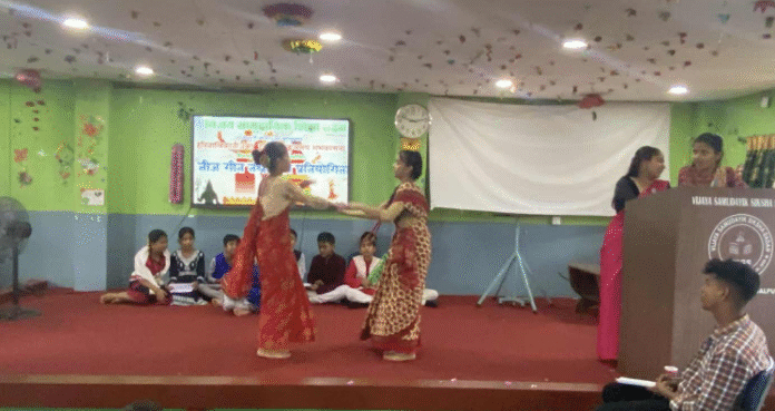 गैंडाकोट । विजय सामुदायिक शिक्षा सदनले हरितालिका तीजको अवसरमा विद्यालयमा तीज गीत प्रतियोगिता सम्पन्न गरेको छ । विद्यार्थीभित्र रहेको नृत्य र गायन प्रतिभालाई उजागर गर्ने उद्देश्यले आयोजना गरिएको कार्यक्रममा विद्यार्थीहरूले मौलिक शैलीमा आफ्ना तीज गीत प्रस्तुत गरेका थिए ।