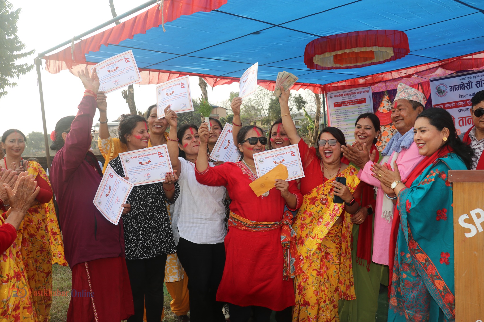 प्रतियोगितामा वैकुण्ठ नगर महिला समूह गैंडाकोट ५ ले प्रथम स्थान हासिल गर्न सफल भएको छ । वैकुण्ठ नगर महिला समुहले नगद रु ११ हजार र साथमा प्रमाणपत्र प्राप्त गरेको छ । त्यस्तै, कुशुमघाट महिला समुहले गैंडाकोट ५ ले दोस्रो स्थान हासिल गरेको छ । दोस्रो स्थान हासिल गरेको कुशुमघाटले नगद रु ८ हजार र साथमा प्रमाणपत्र प्राप्त गरेको छ । जनजागृती महिला समूह गैंडाकोट २ ले तृतीय स्थान हासिल गर्दैै नगद रु ५ हजार र साथमा प्रमाणपत्र प्राप्त गरेको छ ।
